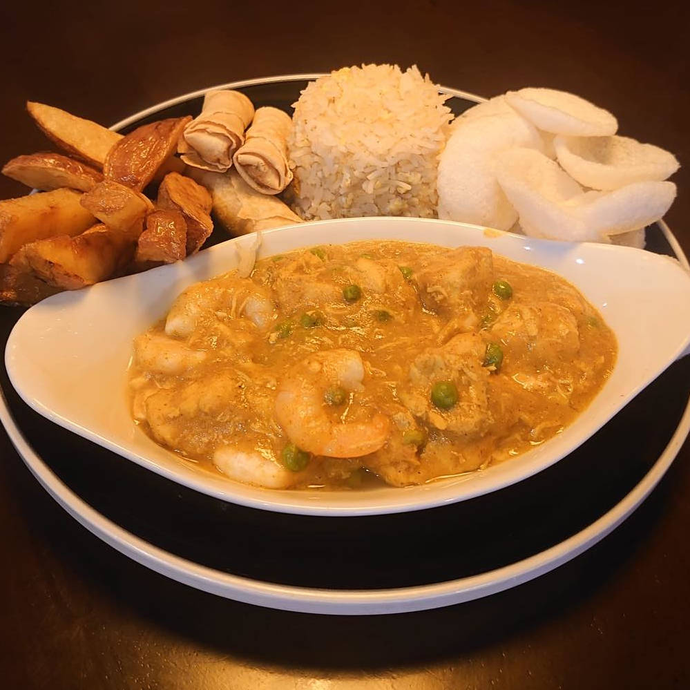 Served with rice, chips and prawn crackers.